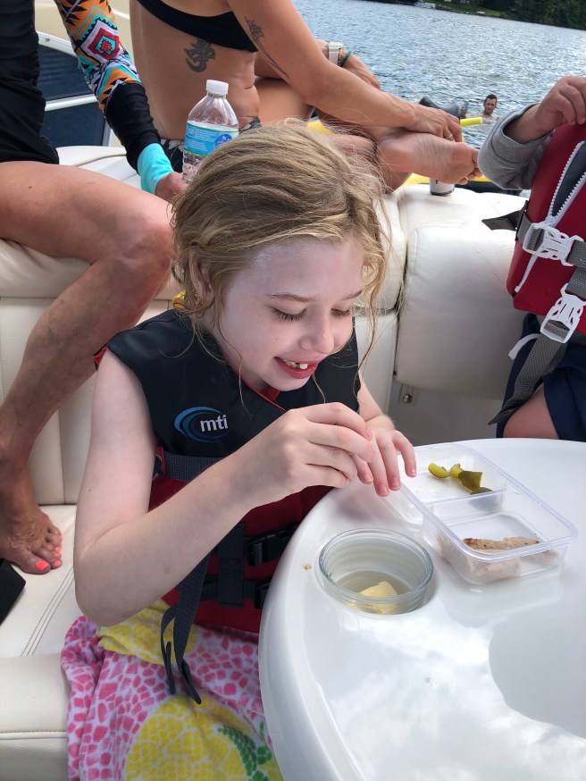 Reagan is pretty self aware she understands her limitations and what is just too much for her. She knew running around after a day of swimming and boating may be to physically draining for her so playing barbies it was. She knew staying up and singing happy birthday only to not get to eat the cake probably wouldn’t be fun, but having a sleepover in one room with her cousin, mom and aunt would be. She knew, but I didn’t. My head was clouded with what I wanted her childhood summers to look like and how they differed from my own.